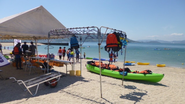 湾内でインストラクターの指導を受けたのち、浜から約1km離れた「島ごと美術館の作品の1つ‘‘波の翼’’」までミニツーリングに出発します。ツーリング終了後、時間に余裕があれば、湾内を自由に楽しんでいただけます♪